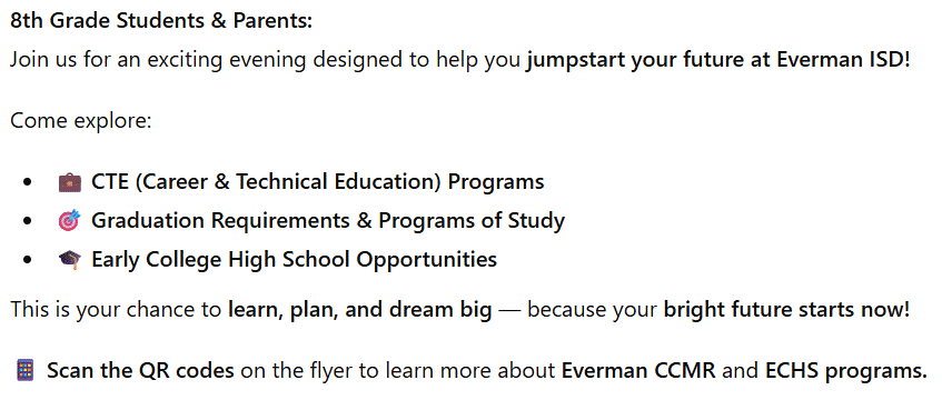 π’ Important details and guidelines will be sent home in November, so families can start planning and preparing together. We encourage everyone to review the information once it arrives to help students succeed with their projects!