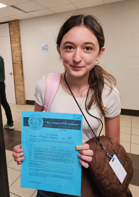 Los estudiantes de Roy Johnson STEM Academy demuestran las expectativas escolares PAWS al ser Orgullosos, Responsables, Sabios y Seguros. Los estudiantes ganan pases PAWS cuando muestran estos comportamientos y los entregan diariamente a sus maestros de 4.º y 8.º período.