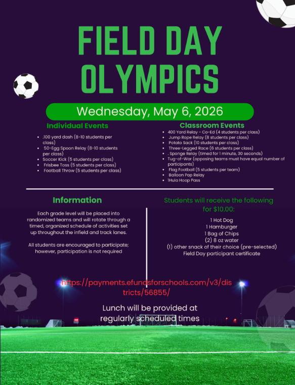 ⚖️ Students assigned ISS, OSS, or DAEP on the day of Field Day due to a discipline consequence will not participate and will remain in an academic setting.
