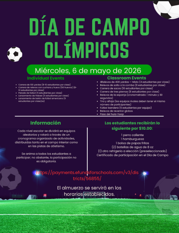 🏅 Los estudiantes necesitan 5 pases PAWS para participar en las actividades olímpicas del Día de Campo.